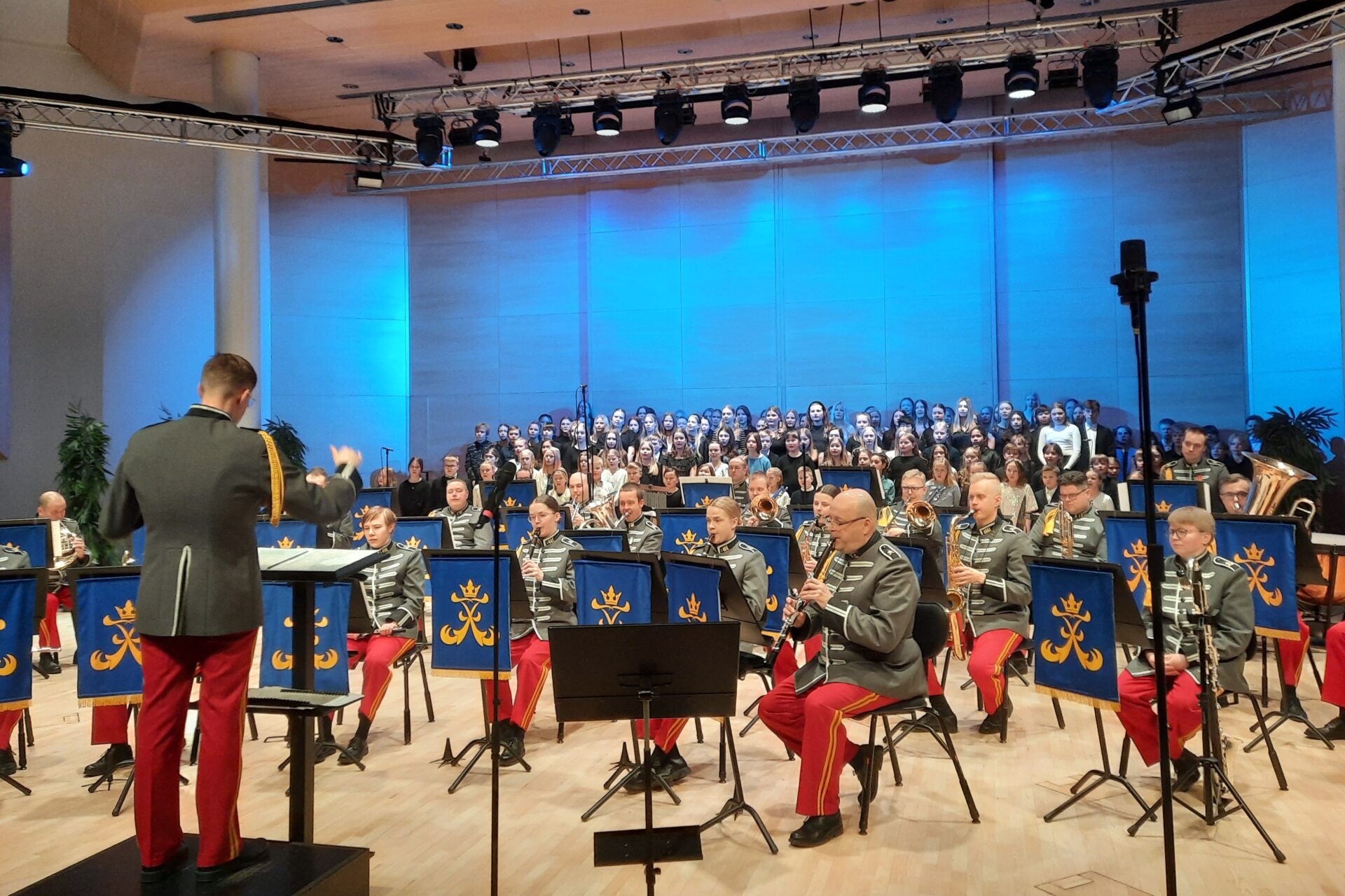 Lavalla pari sataa esiintyjää: Rakuunasoittokunta ja Kimpisen kuoro.