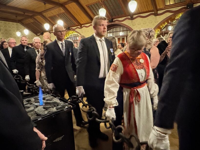 Illan kohokohtana on uuden vuosirenkaan taonta itsenäisyyden ketjuun. Sitä varten on tuotu ahjo ja takomisvälineet hotellin suureen saliin. Yli 200 kiloa painavaa ketjua säilytetään linnaan johtavan käytävän seinällä koukuissa. Seinään kiinnitetyn laatan mukaan ketju muistuttaa vapauden merkityksestä kansakunnalle.