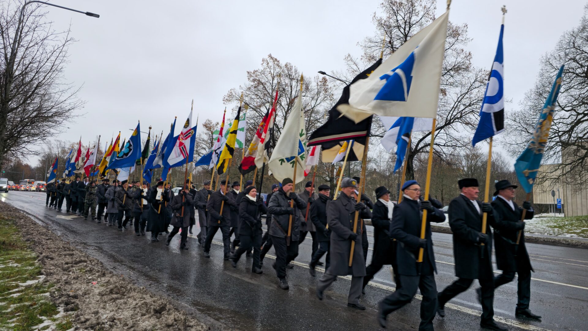 Lippumarssi Tampereen maanpuolustusjuhlaan. Kuva Juha Happonen.