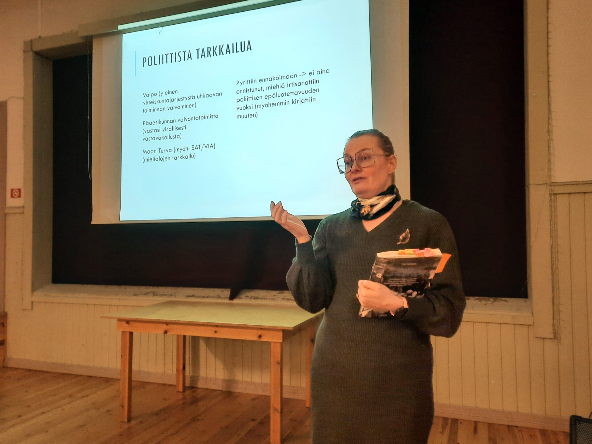 Historioitsija Virpi Launonen kertoi Salpalinjan rakennustyömaiden arjesta. Kuva Ilkka Pohjalainen