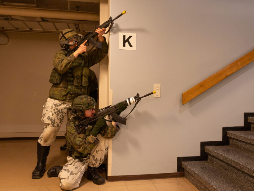 Lappeenrannassa yksi harjoitusalue oli Armilan tyhjillään oleva sairaala. Sitä kohti etenee maastopukuisia sotilaita harvennetuissa jonoissa, ripeästi, mutta varovasti. Paikallisjoukot ovat eristäneet alueen, koska sairaalan sisällä on oletettavasti vihollisen erikoisjoukkoja. Nämä on tarkoitus etsiä, ottaa kiinni tai tuhota. Sotilaat varmistavat sisään pääsyn rakennukseen, ja jäävät odottamaan seuraavaa vaihetta.