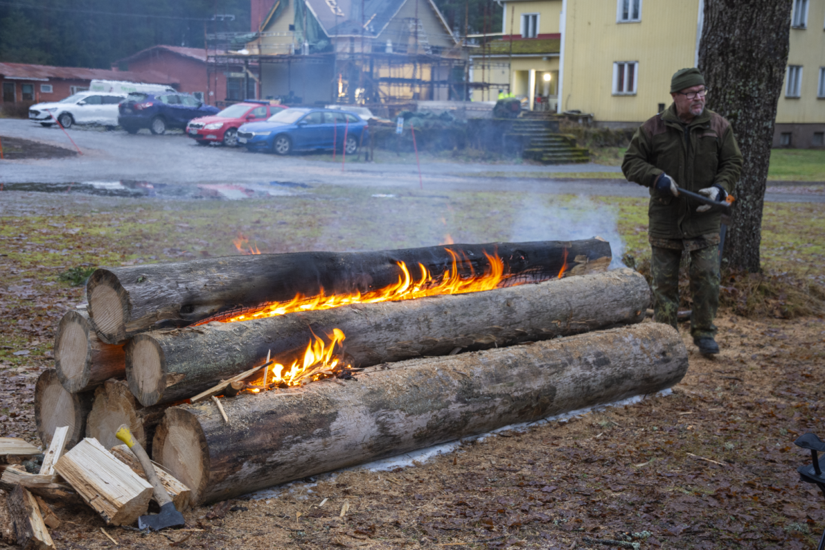 Pihalla juhlijoita tervehti ja lämmitti komea rakovalkea. Hernerokkaa ja kakkukahvit tarjosi Hugon pappila.